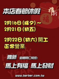 雅新2024春節休假公告